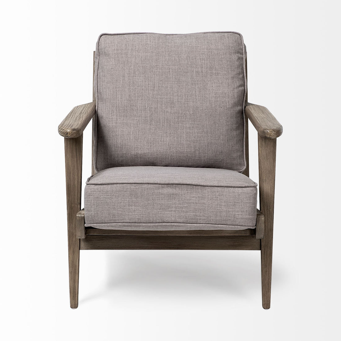 31" Gray and Brown Fabric Cushions And Wood Lounge Chair