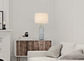 30" Gray And Aqua Glass Table Lamp With White Drum Shade