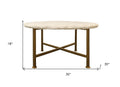 30" Ivory and Brass Genuine Marble and Iron Round Frame Coffee Table