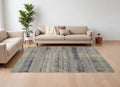 4' X 6' Gray Blue and Ivory Wool Abstract Hand Knotted Area Rug