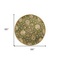 5' Green Red And Ivory New Zealand Lambs Wool Floral Medallion Hand Tufted Round Rug