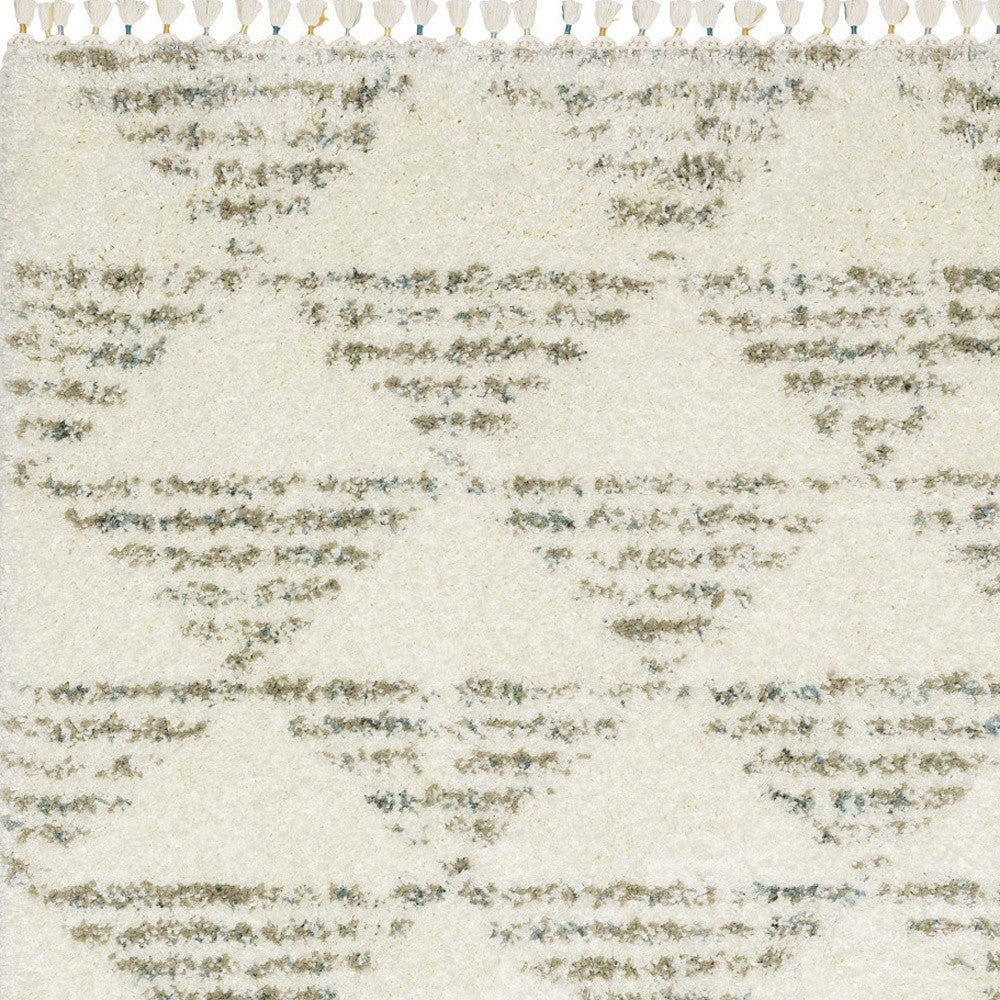 8' X 11' Ivory And Green Geometric Shag Area Rug With Fringe