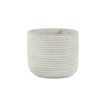 7" Light Gray Striped Cement Indoor Outdoor Round Pot Planter