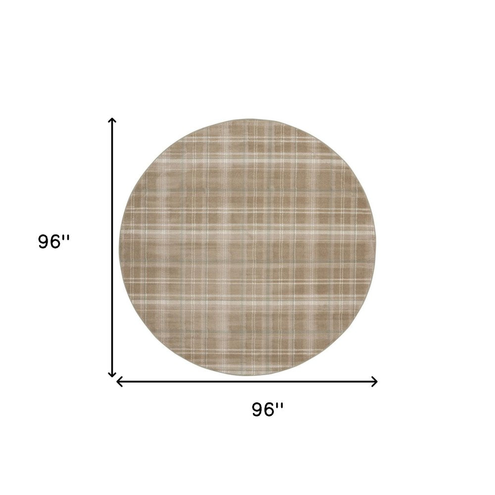8' Taupe and Ivory Plaid Round Rug