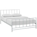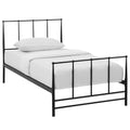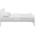 The Estate Bed is a masterclass in nostalgic design, with integrated round finials, a comprehensive headboard to footboard construction, and a charming tapered frame made of coated steel. This bed frame is designed to eliminate the need for a box spring and supports various mattress types. With its weight capacity of up to 1300 lbs, the Estate Bed is perfect for anyone seeking a serene and relaxed bedroom atmosphere. The Estate Bed is built to last, with two reinforced center beams and supporting legs for maximal stability. Its non-marking foot caps ensure that your floors stay scratch-free. May Require Assembly