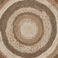 5' Beige Jute Abstract Geometric Hand Braided Round Rug